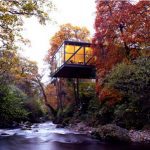 The Goulding Summerhouse by Scott Tallon Walker Architects was originally designed for Sir Basil Goulding; He was so concerned about his beautiful gardens along the Dargle Valley that he wanted the new building to take up as little of the garden as possible. The resulting design cantilevered over the river, disturbing as little as possible of the natural vegetation of the river gorge. (via – things i have seen – a new leaf)